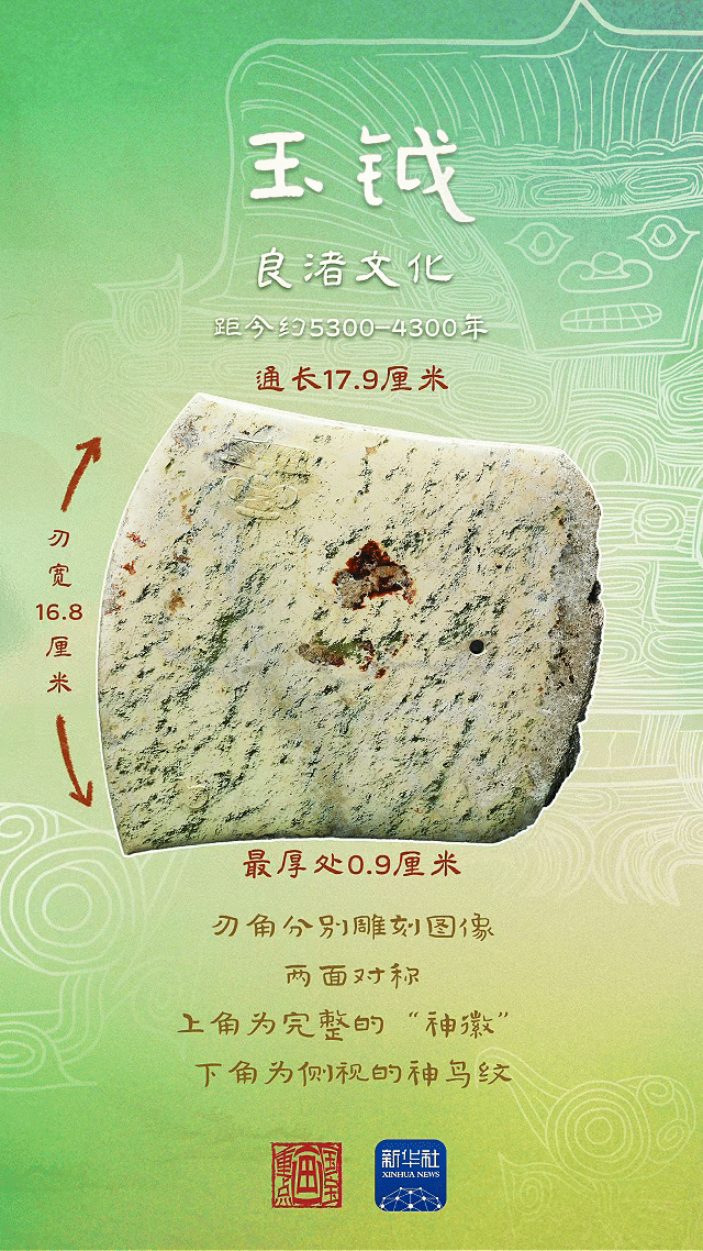 距今5300年至4300年的良渚文明,是我国史前玉文明的顶峰,良渚先民建立了一整套玉礼器体系,用来反映具有者的身份、位置。良渚玉器上的纹样,以其精深的雕刻、生动的构图、奥秘的涵义,成为良渚文明的共同印记,叙述着千年前的故事。