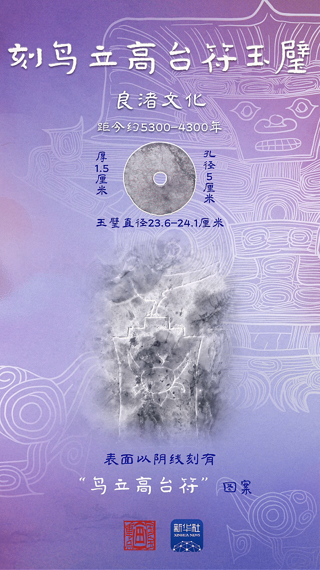 先民视鸟为神的载体和化身,因而鸟也成为了良渚文明图画中最丰厚的体裁之一。在器类很多的良渚文明玉器中,“玉鸟”独具魅力。许多人在观赏良渚博物院时,都会停步打量这件玉璧,寻觅上面的“鸟立高台符”。